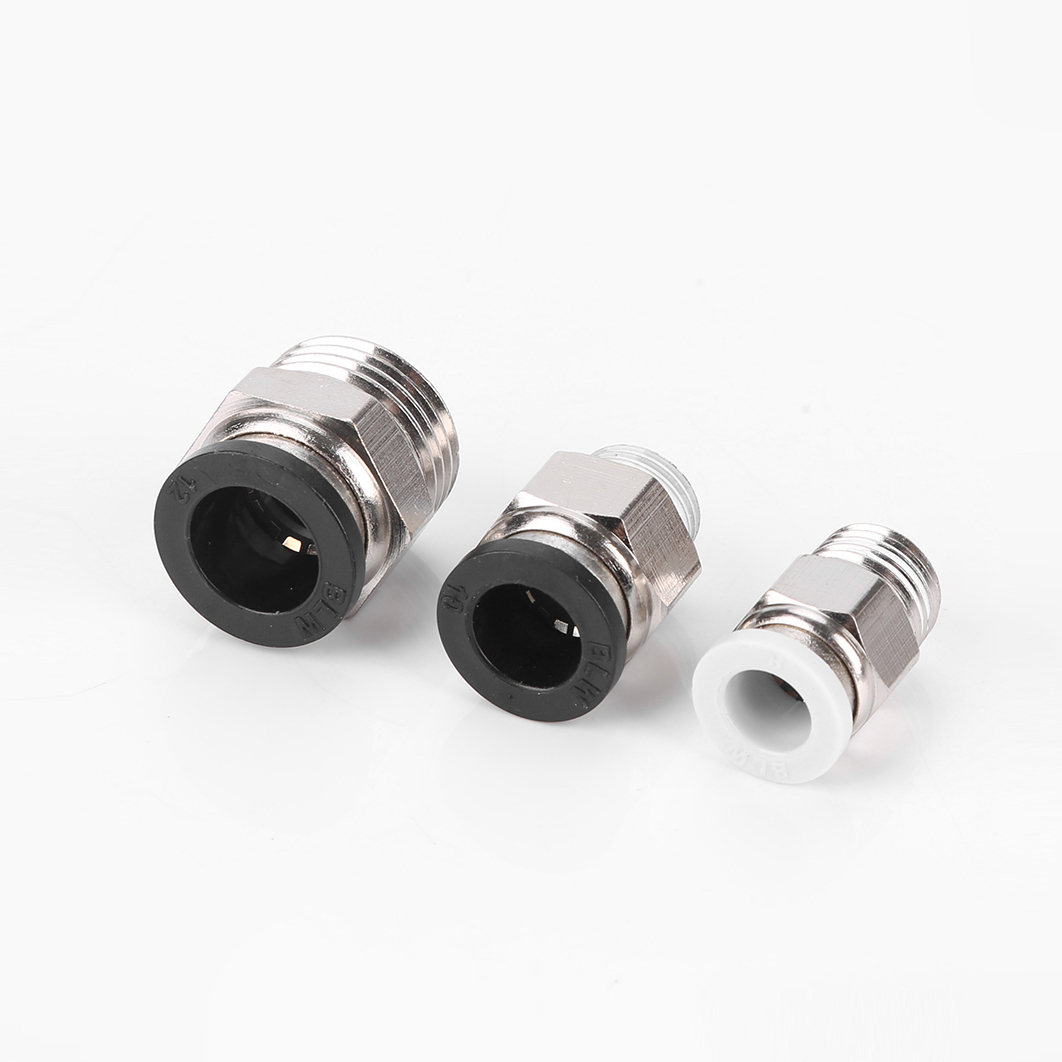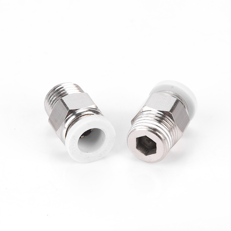 The PC external thread joint is a pneumatic joint made of nickel-plated brass, mainly used for quick connection of pipelines, featuring pressure resistance and temperature resistance. In its model, "PC" stands for quick plug and pull design, and the external thread structure can be directly connected to threaded pipe fittings or valves.