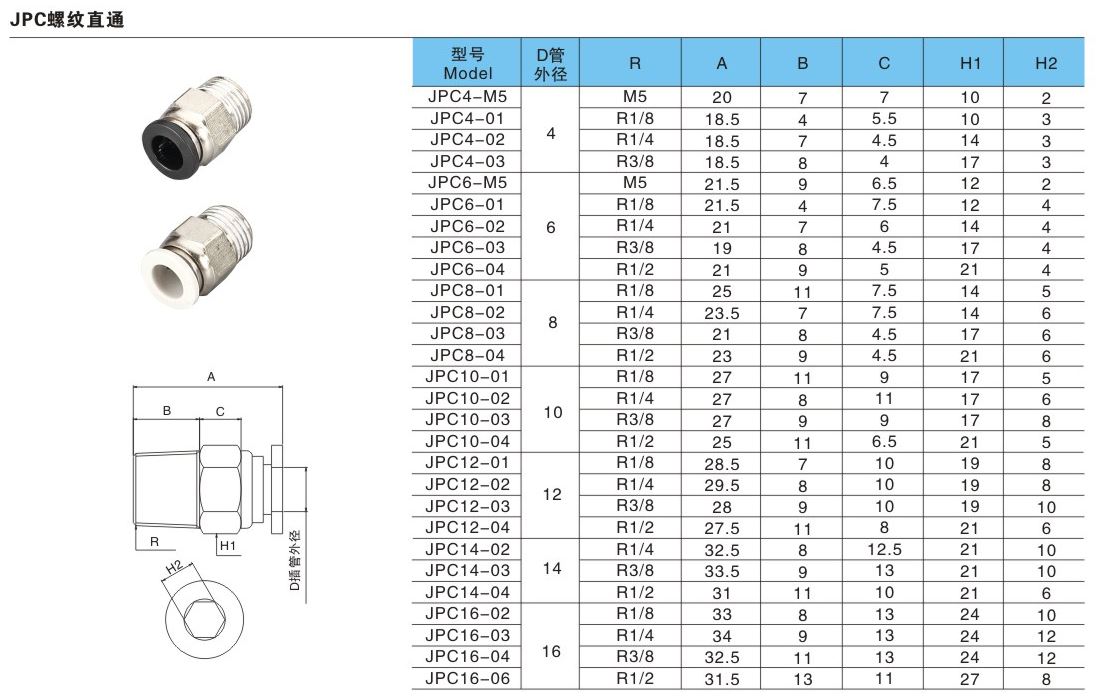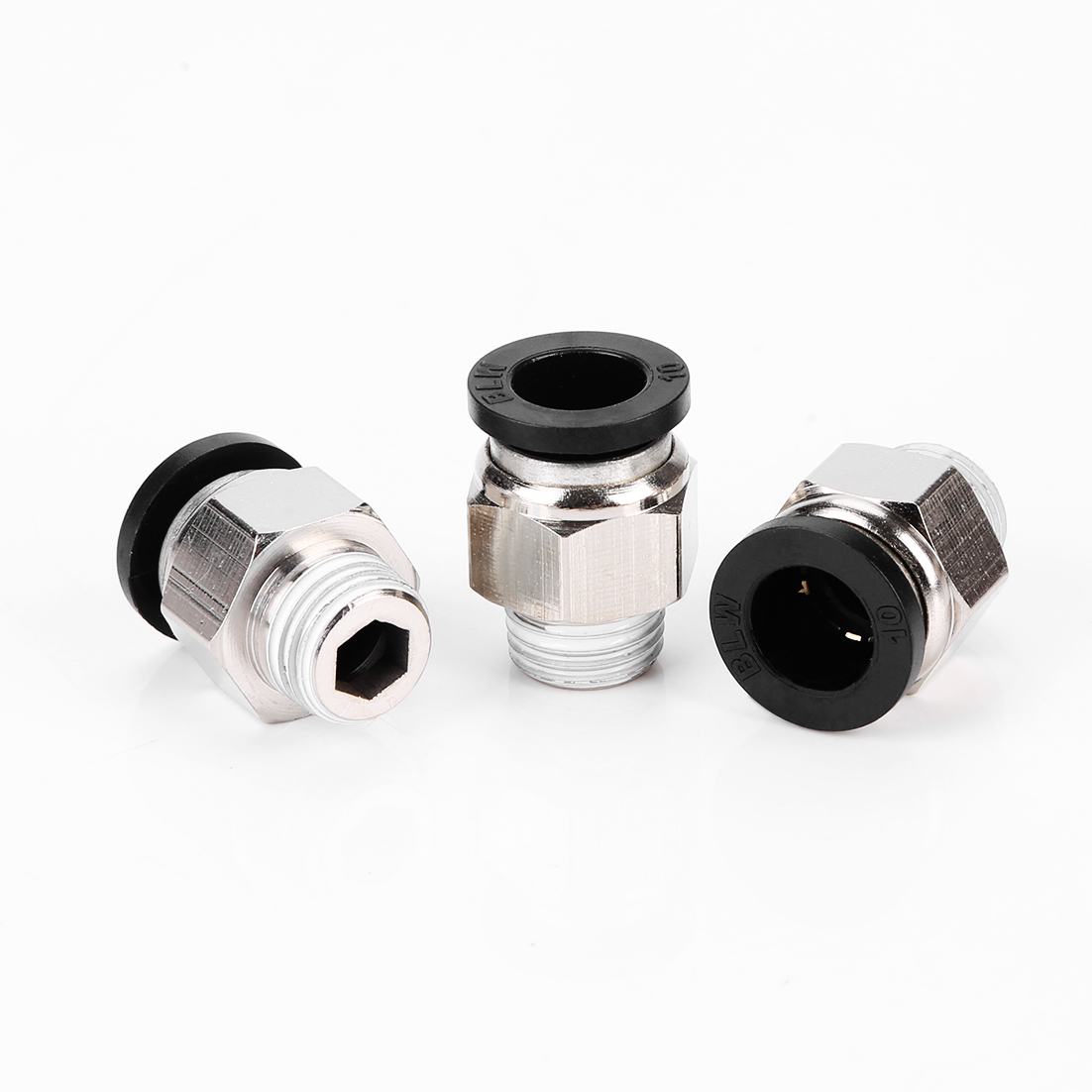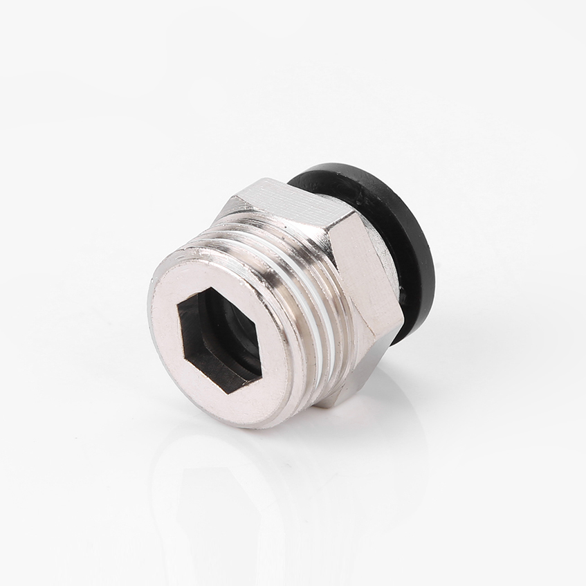 • PC external thread joint is a pneumatic joint made of brass nickel plated material, mainly used for quick connection of pipelines, with pressure and temperature resistance characteristics. The "PC" in its model represents a quick plug design, and the external thread structure can be directly connected to threaded fittings or valves.