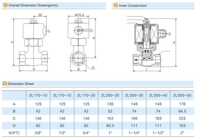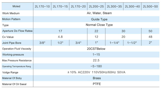 • It is suitable for the control of media such as steam, hot water and liquid. It adopts pilot piston type, polytetrafluoroethylene (PTFE) seal and the valve body material is brass.
