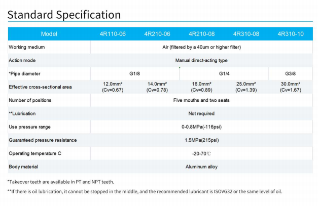 The 4R series hand-operated valve is a widely used human controlled directional valve in pneumatic equipment, and its functional characteristics mainly include the following: