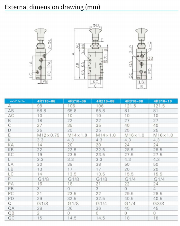 Reliable structure: This series of hand-operated valves adopts a sliding column structure, which has good sealing and durability, and can work stably in pneumatic systems.